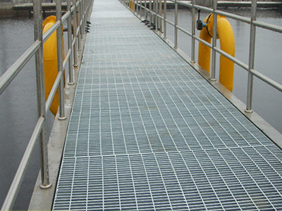 碼頭鋼格柵板條間的空隙寬度可根據清除污物的方式和水泵的要求來設定,人工清除格柵間隙一般為16——25mm。沉砂池或沉淀池前的格柵一般采用15-30mm,大為40mm。常用的機械清渣設備有三種,即鏈條式、移動式及鋼絲繩牽引式格柵清污機。